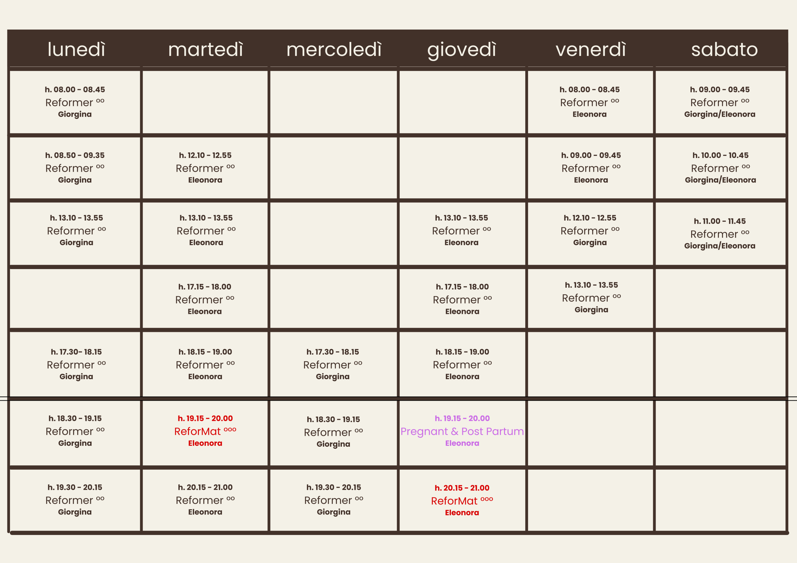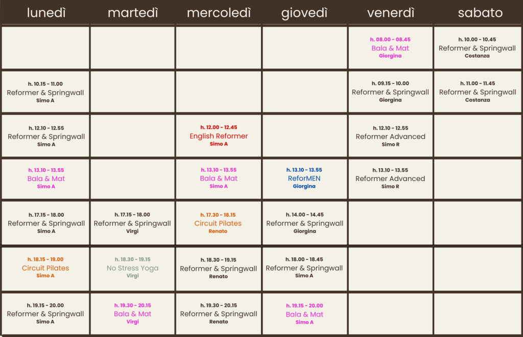 da gennaio a luglio 2026 (alcuni orari potranno subire delle modifiche durante il corso dell'anno)